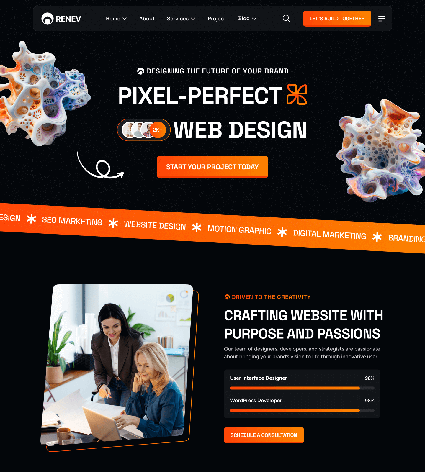 Renev is a forward-thinking web design agency committed to creating powerful, visually stunning websites that drive results. Our team of designers, developers, and strategists work together to build websites that captivate, engage, and convert visitors into loyal customers.